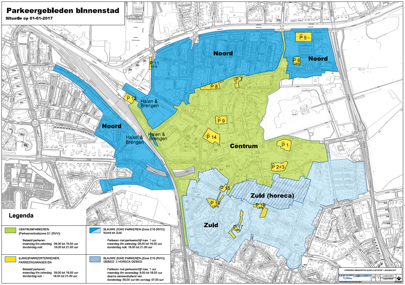 1. Ter zake van het betaald parkeren in het gebied aangegeven op de kaart “PARKEER GEBIEDEN BINNENSTAD” geschiedt het in werking stellen van de parkeerapparatuur