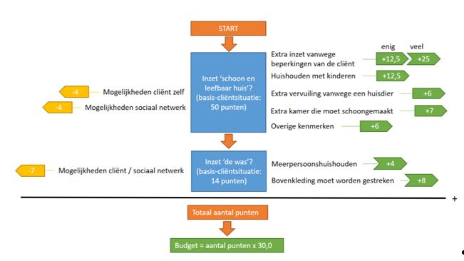 Het aantal punten dat correspondeert met de verschillende resultaten. De onderzoeken in Utrecht, Amsterdam en een derde gemeenten bieden een norm voor de zogenaamde gemiddelde situatie of basiscliëntsituatie. Dit is een huishouden waarin ondersteuning nodig is bij behalen van het resultaat schoon en leefbaar huis. Aanvullende resultaten of aanvullende kenmerken waardoor het huis extra schoon moet zijn of sneller vervuilt, zijn in de basiscliëntsituatie niet aan de orde.