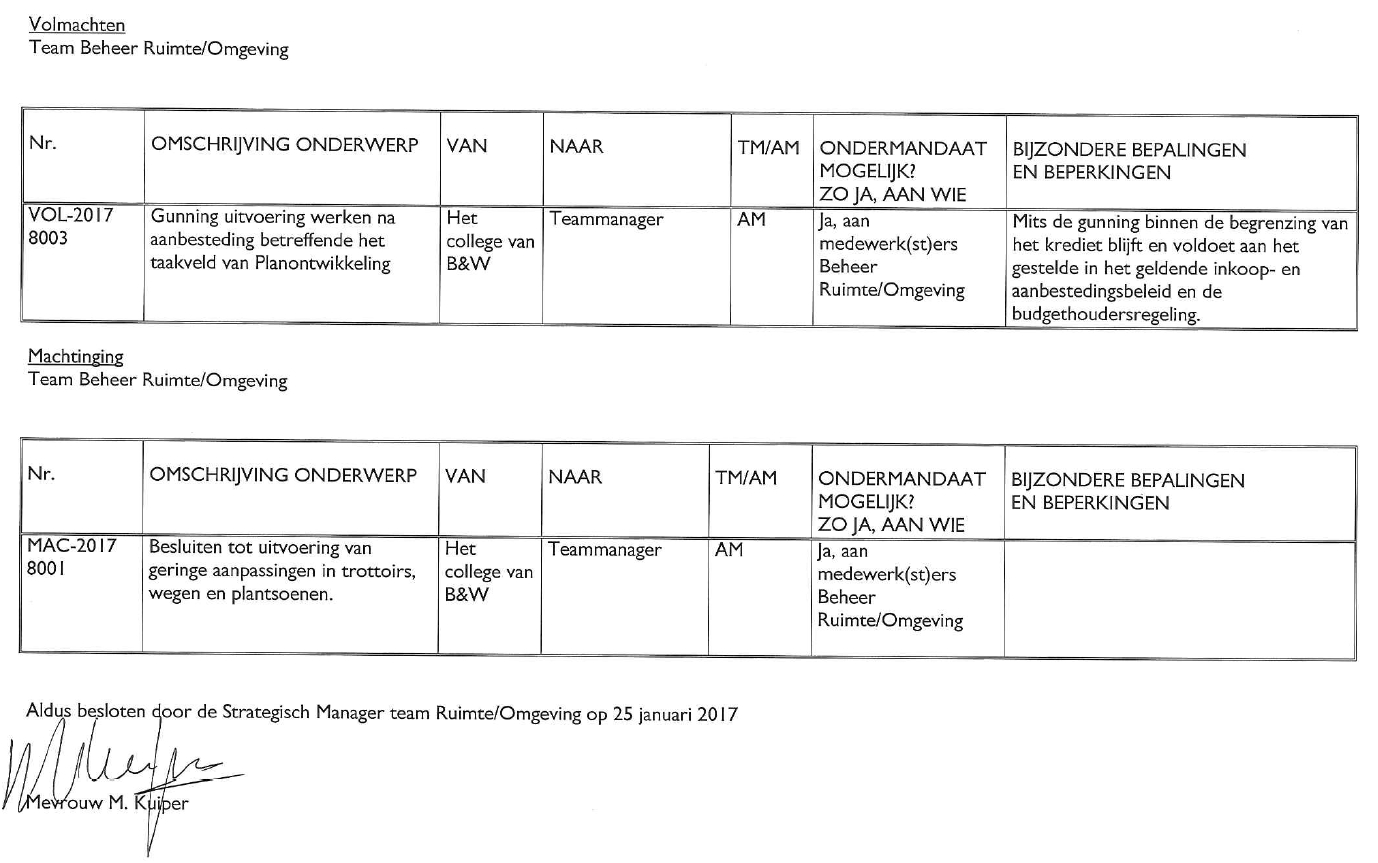 Aldus besloten door de Strategisch Manager van Ruimte/Omgeving op 25 januari 2017