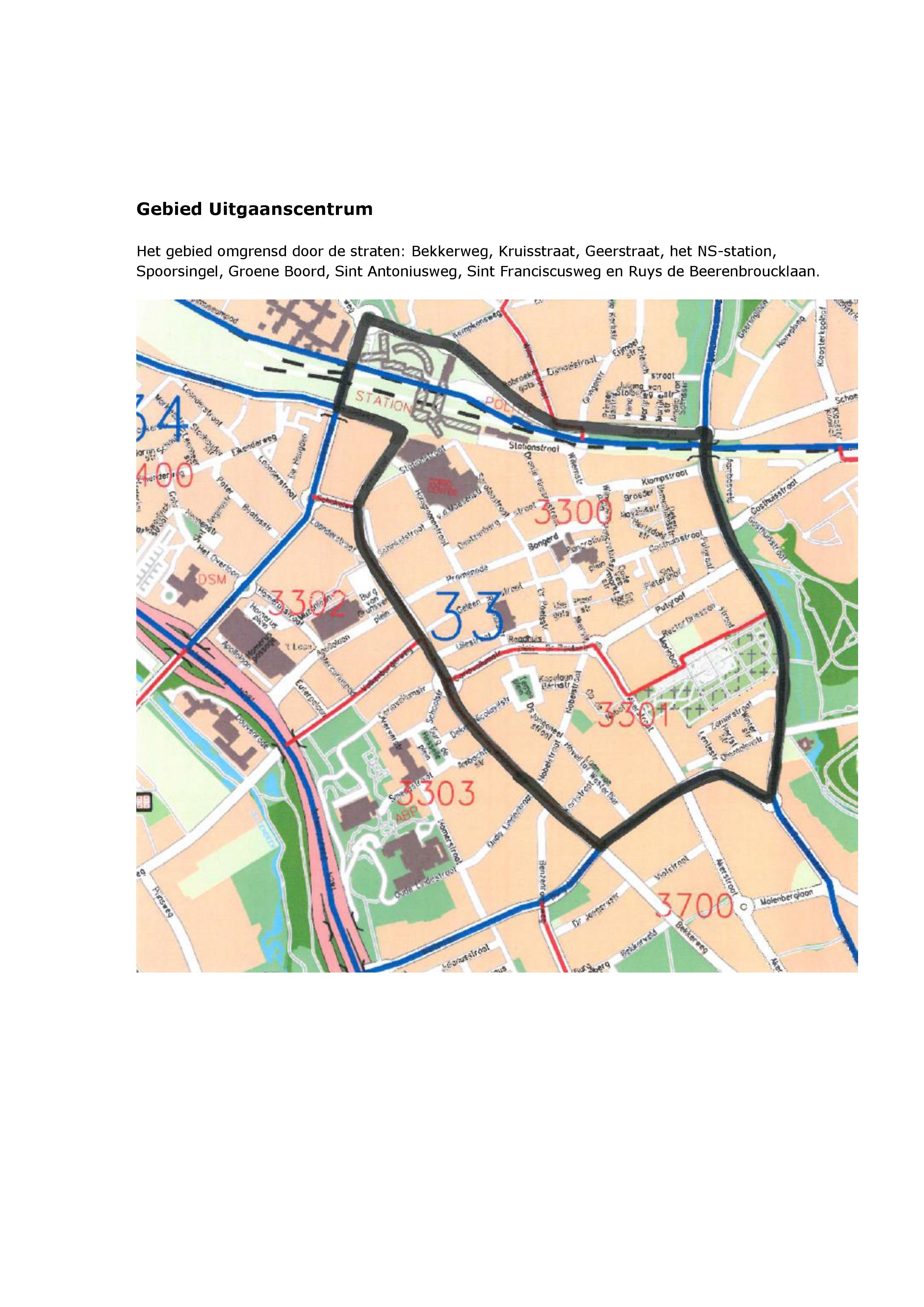 dat het daarnaast wenselijk is om notoire overlastgevers voor een bepaalde tijd de toegang tot het uitgaansgebied te kunnen ontzeggen en derhalve het gebied ‘Uitgaanscentrum’ als apart gebied aangewezen dient te worden;