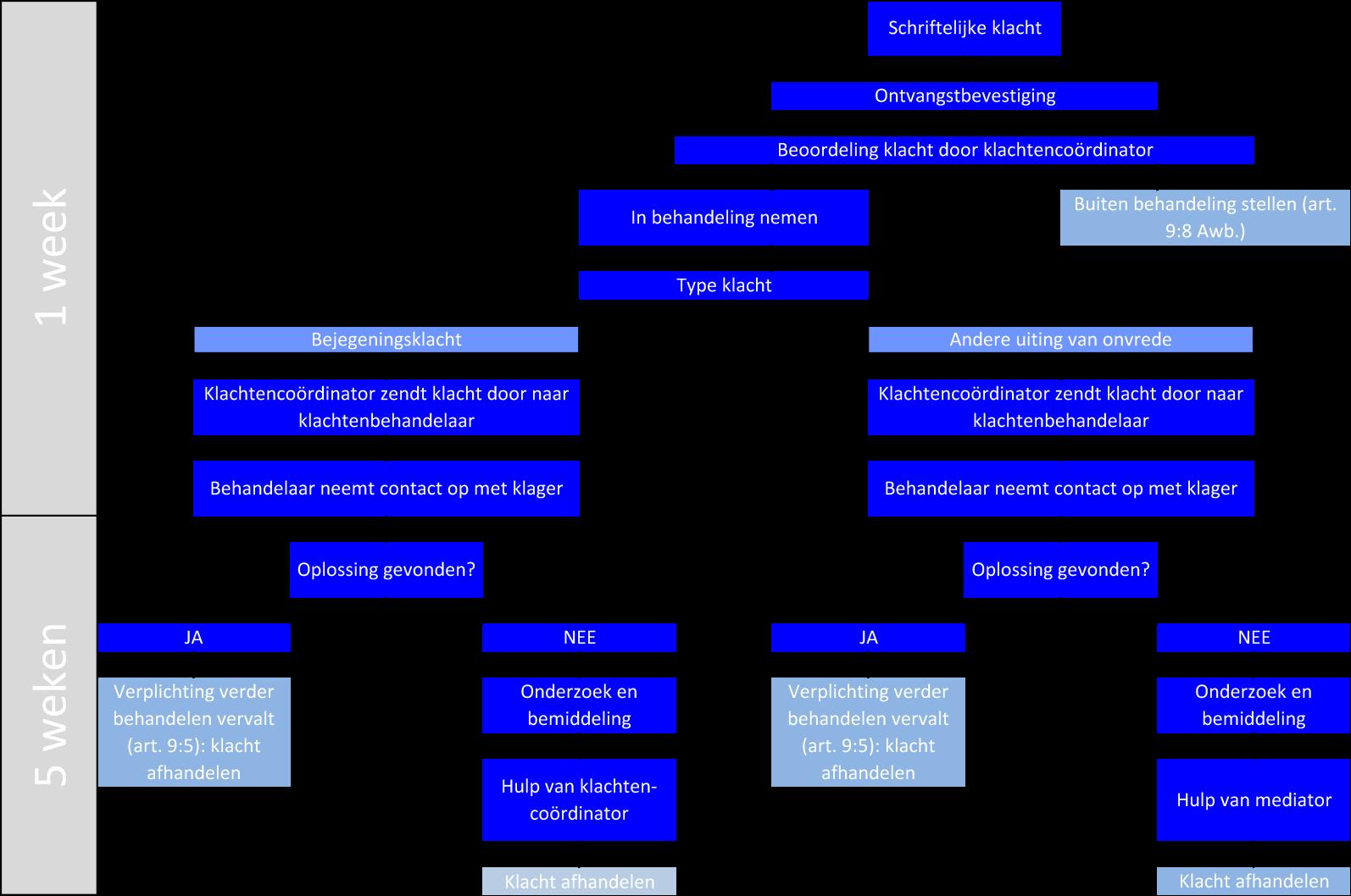 De behandeling van schriftelijke klachten verloopt via het onderstaande stroomschema: