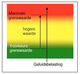 In de Wet geluidhinder zijn normen opgenomen voor de toelaatbare geluidsbelasting van wegverkeer- en spoorlawaai en ook industrielawaai. De wet gaat daarbij uit van een voorkeursgrenswaarde en een maximale grenswaarde. In de Wet geluidhinder zijn normen opgenomen voor de toelaatbare geluidsbelasting van wegverkeerslawaai en railverkeerslawaai en ook industrielawaai. De wet gaat daarbij uit van een voorkeursgrenswaarde en een maximale grenswaarde. De grenswaarden zijn over het algemeen van toepassing op nieuwe situaties (b.v. bouw van een woning of aanleg van een weg), veranderingen (reconstructies) of saneringssituaties.