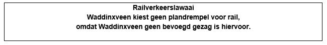 Waddinxveen heeft geen zeggenschap over railverkeerslawaai. ProRail is het bevoegd gezag voor wat betreft railverkeerslawaai en stelt een eigen Actieplan op inclusief plandrempels.