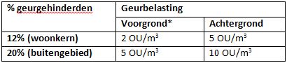 Tabel 3: Relatie tussen geurhinder en voorgrond- en achtergrondbelasting op basis van Onderzoek Geelen et al.