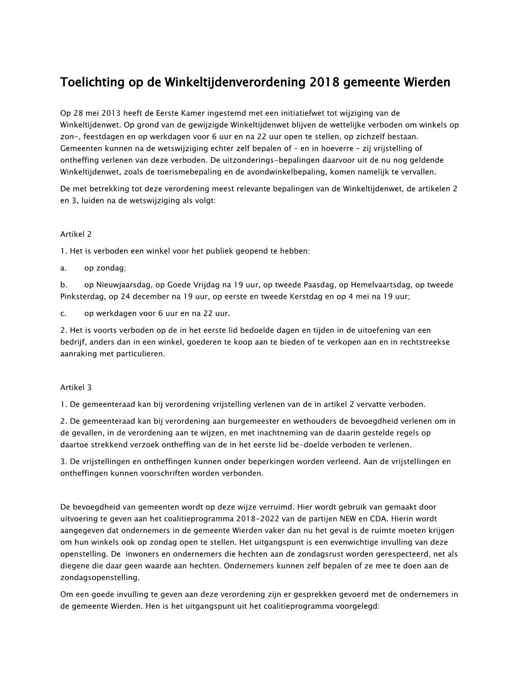 2. Deze verordening wordt aangehaald als: Winkeltijdenverordening 2018 gemeente Wierden.