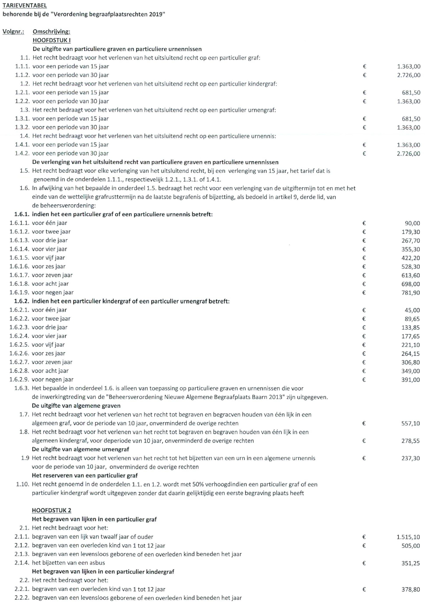 Verordening op de heffing en de invordering van begraafplaatsen 2019 (Verordening begraafplaatsen 2019)