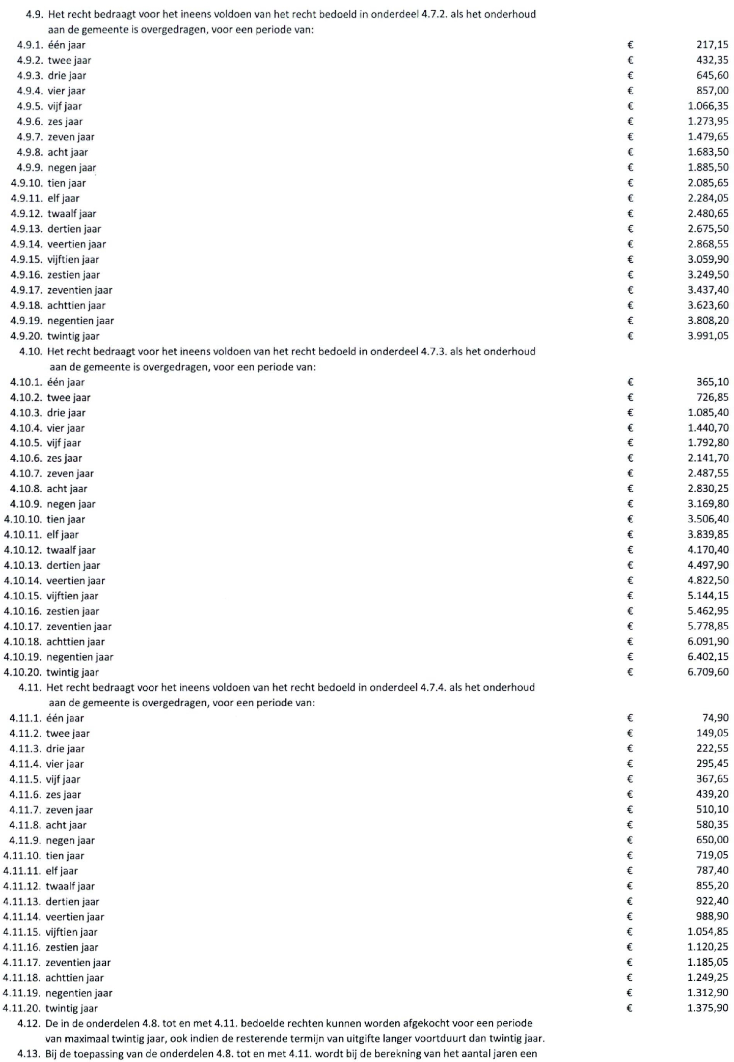 1. De onderhoudsrechten, bedoeld in 6.3, 6.4 en 6.5 van de tarieventabel, worden geheven bij wege van aanslag.