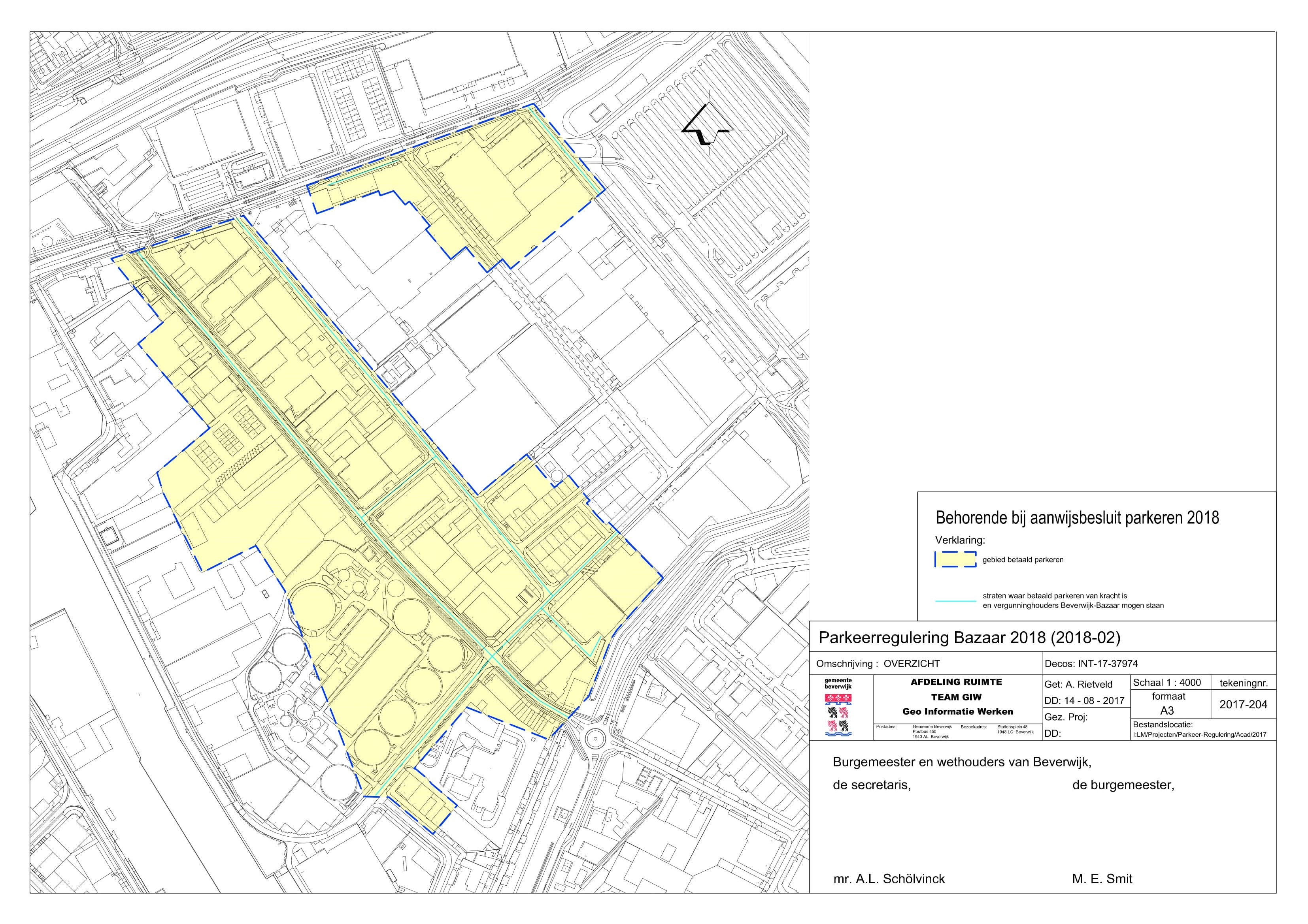 “Kaart 2018-02 parkeerregulering Bazaar” (INT-17-37974) en