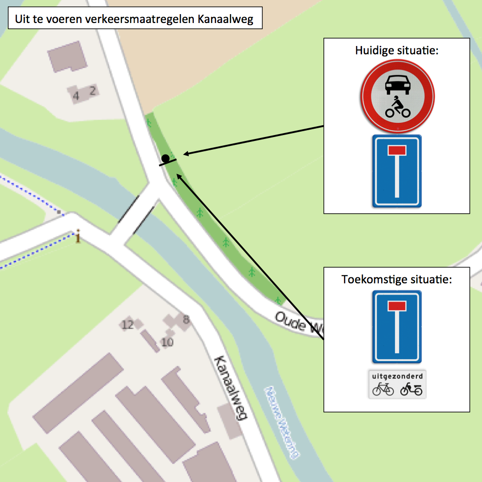 Naast de verkeersmaatregel op de verbindingsweg, wordt tevens de geslotenverklaring voor gemotoriseerd verkeer op de Kanaalweg, op het gedeelte tussen Oudeweg en de overgang naar het fiets-/bromfietspad van de N35 opgeheven. Dit weggedeelte is doodlopend voor gemotoriseerd verkeer, waardoor alleen verkeer met een bestemming van deze weg gebruik maakt.