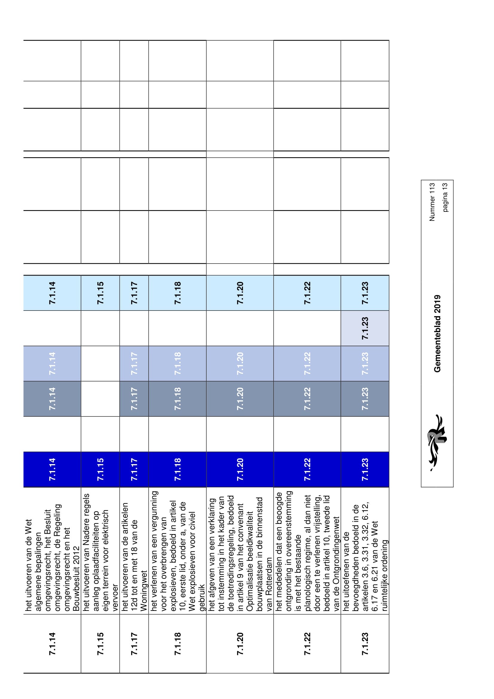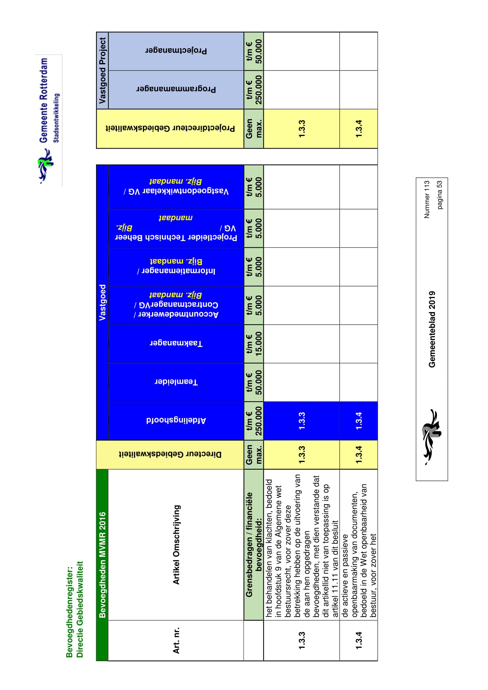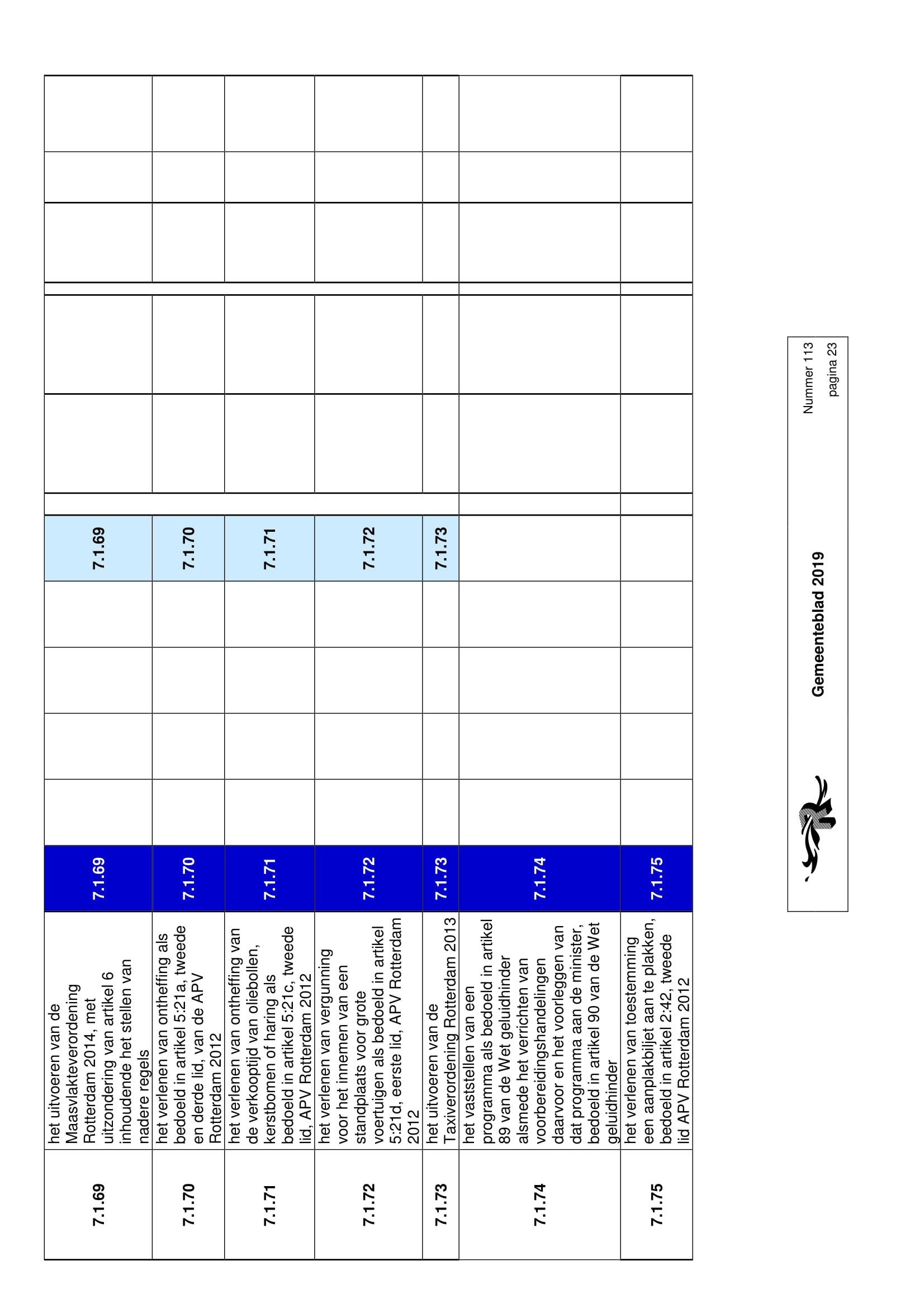 Dit gemeenteblad 2019, nummer 113, is uitgegeven op 6 augustus 2019 en ligt op dins-, woens- en donderdagen van 9.00 tot 13.00 uur ter inzage bij het Bestuurlijk Informatiecentrum Rotterdam (BIR), locatie Wachtruimte Timmerhuis, Halvemaanpassage 1 (trap op, melden bij Informatiebalie)
