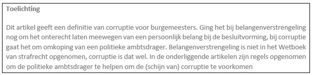 ARTIKEL 2 REGELS ROND (SCHIJN VAN) CORRUPTIE