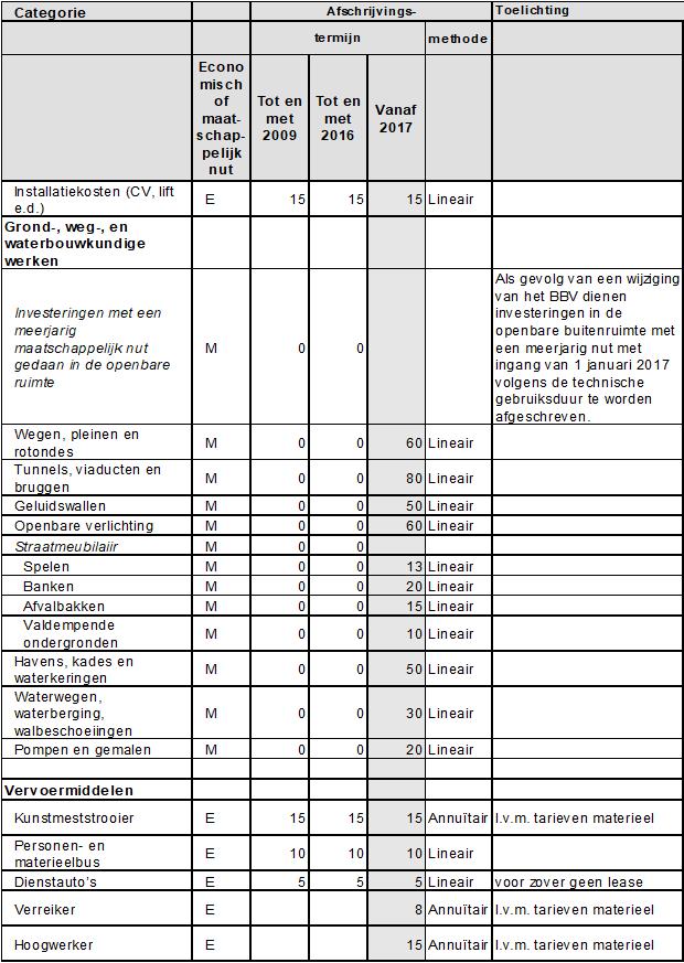 staat in de bijlage 1 bij deze nota een nieuwe afschrijvingstabel.