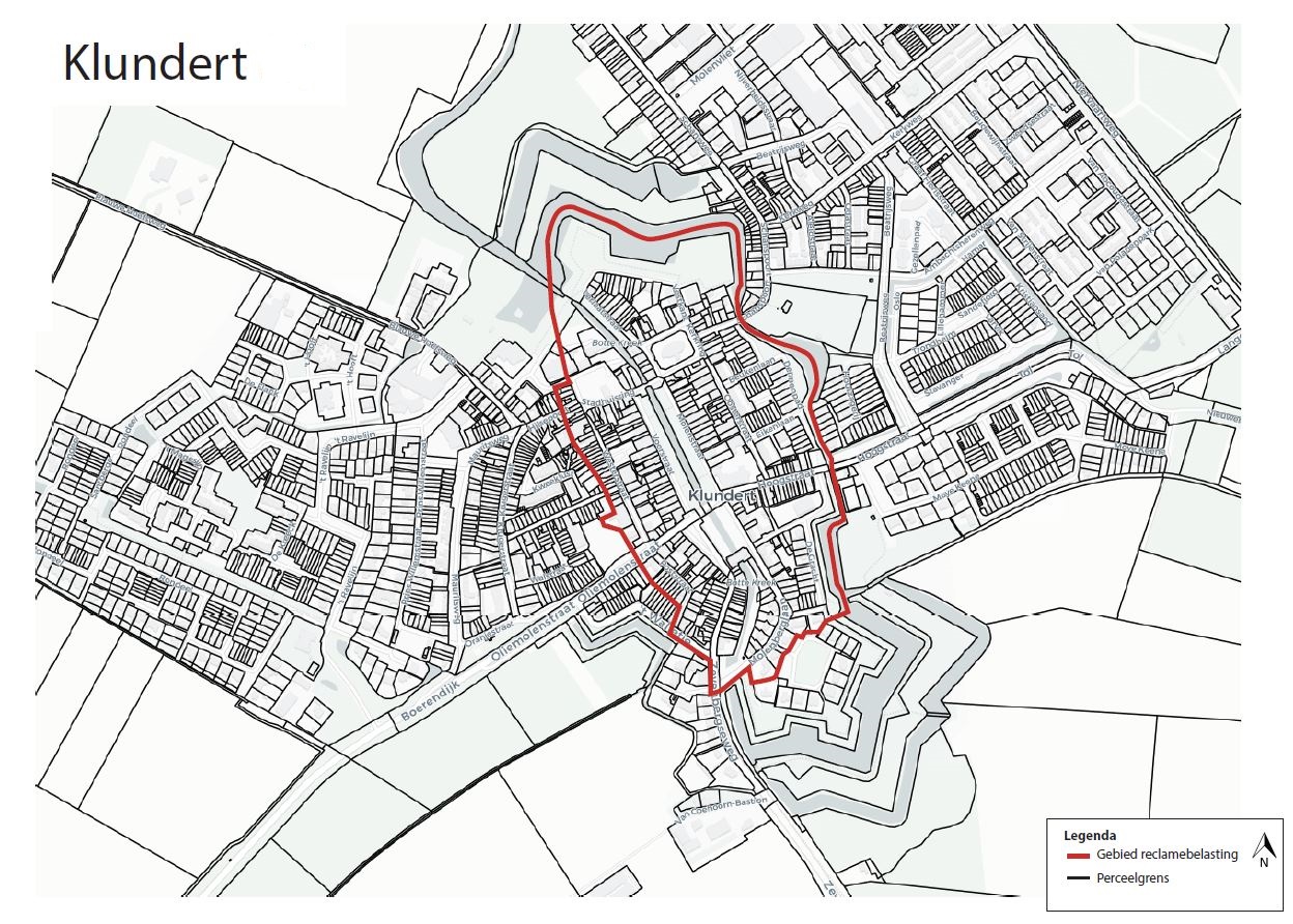 Onder de naam reclamebelasting Klundert wordt, binnen het gebied zoals nader aangewezen op de bij deze verordening behorende kaart, een directe belasting geheven voor een openbare aankondiging die zichtbaar is vanaf de openbare weg.