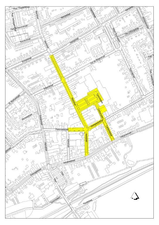 het aangewezen gebied in artikel 2 van de verordening, de straten, zoals aangegeven op de bij deze verordening behorende kaart betreffende Kerkrade West,