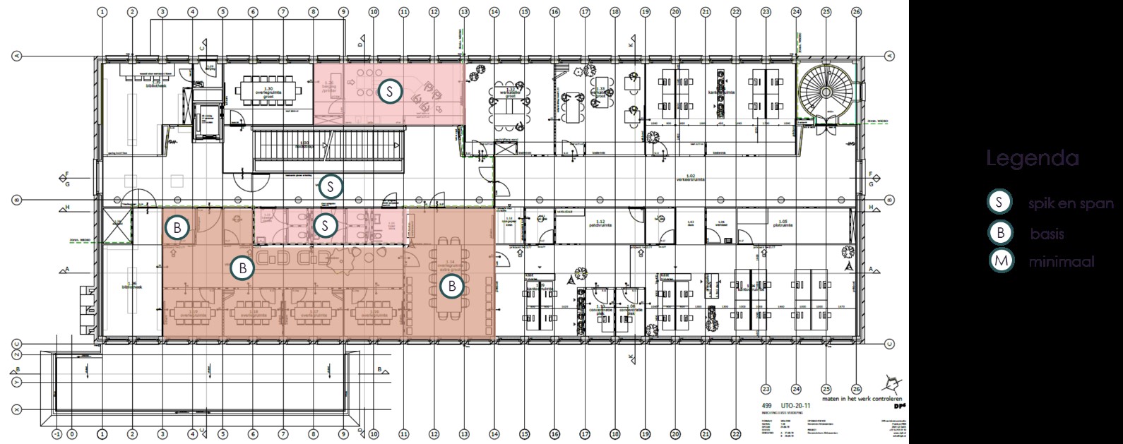 Voor alle ruimtes in het pand is het schoonmaakniveau bepaald. Ook is er een specifiek overzicht gemaakt voor de schoonmaakniveaus voor de gemeenschappelijke ruimtes.