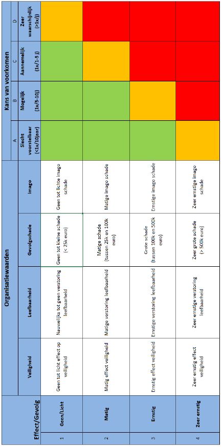 De risicomatrix wordt hieronder toegelicht (zie ook bijlage 5).