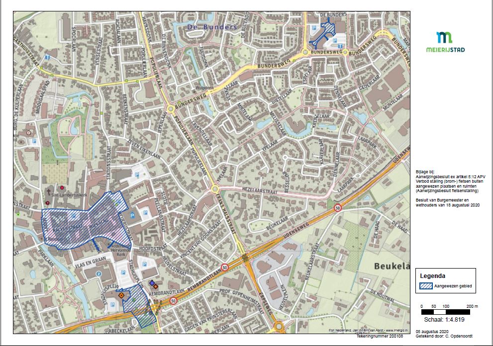 overwegende, dat zij op grond van artikel 5:12 van de APV Meierijstad kunnen besluiten tot aanwijzing van plaatsen waar het verboden is fietsen of bromfietsen onbeheerd buiten de daarvoor bestemde ruimten of plaatsen te laten staan;