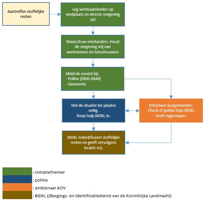 Indien (vermeende) stoffelijke resten worden aangetroffen dient de volgende procedure te worden gevolgd: