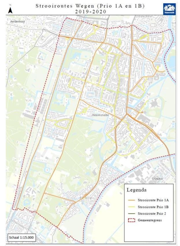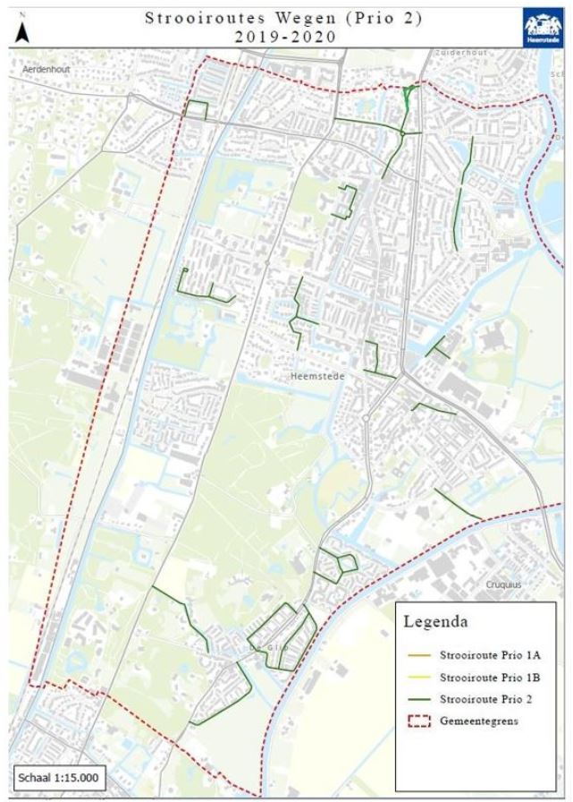 Via het geoportaal van de gemeente Heemstede in te zien waar exact de gladheid wordt bestreden.