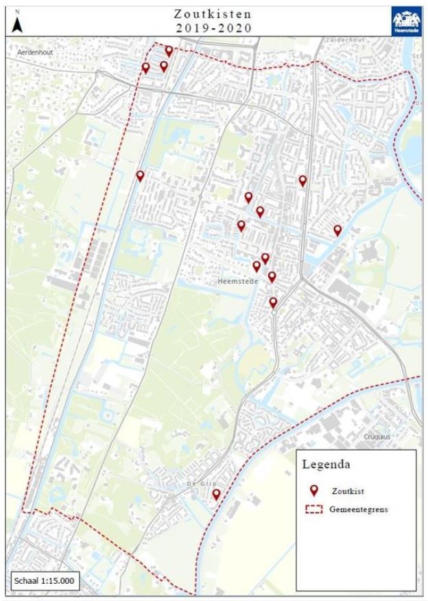 Er zijn diverse locaties waar tijdens het winterseizoen door Meerlanden een zoutkist (400 liter, kunststof) wordt geplaatst. Verzoeken aan de gemeente om op locaties een zoutkist te plaatsen worden door Ruimtelijk Beheer beoordeeld. In de evaluatie wordt bepaald of nieuwe zoutkistlocaties worden opgenomen in de definitieve lijst. Voor elke zoutkist is een contactpersoon gewenst zodat communicatie hierover plaats kan vinden indien nodig.
