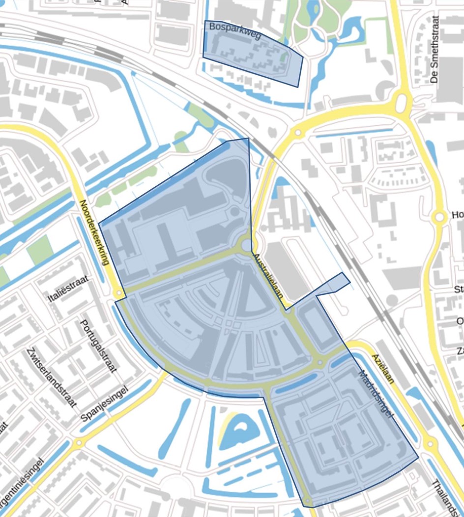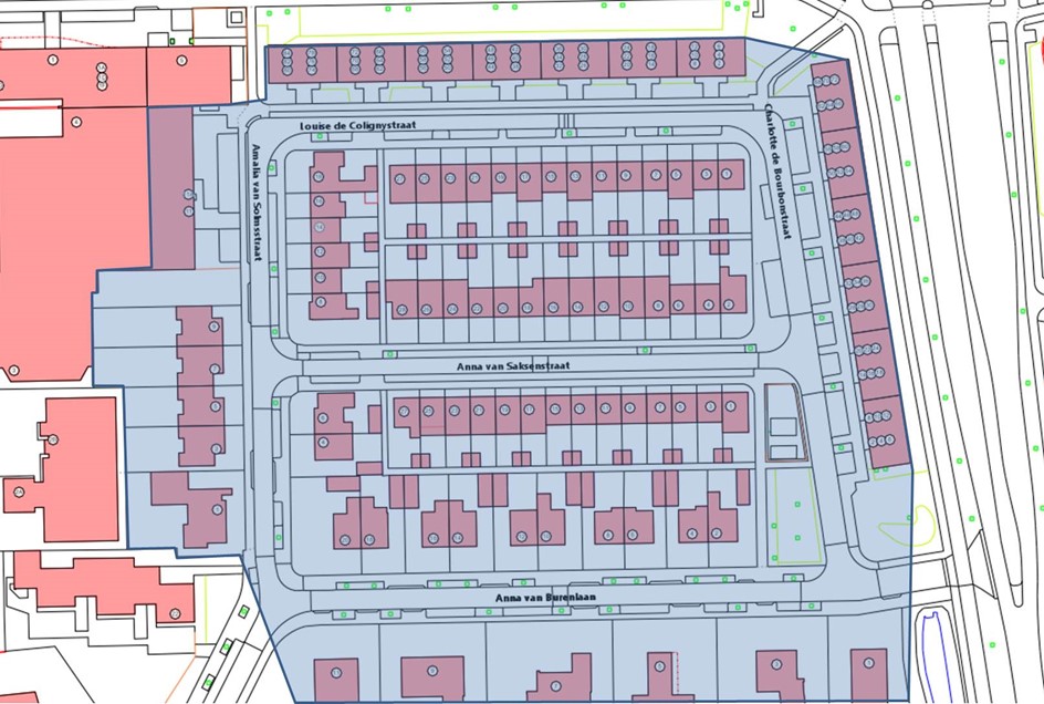 Vergunning gebied V (Anna van Burenlaan e.o.), gelijk aan de aldaar geldende blauwe zone.