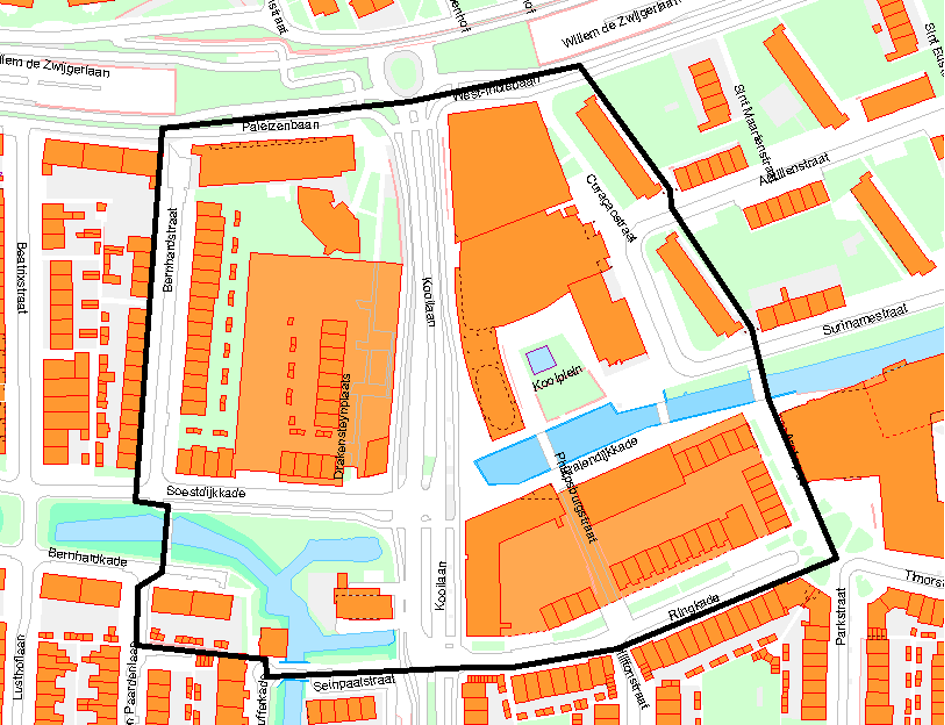 Het gebied rondom het Kooiplein, zoals aangegeven op de bij dit besluit behorende kaart 1e;