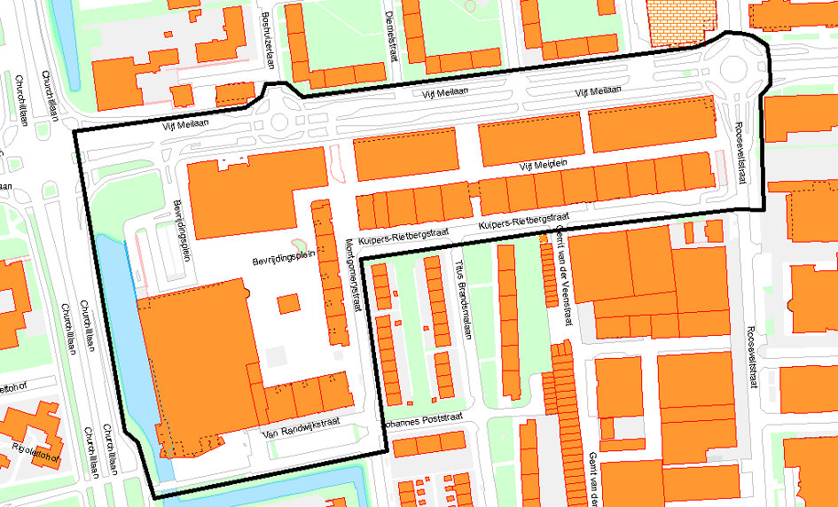 Het gebied rondom het Vijf Meiplein, zoals aangegeven op de bij dit besluit behorende kaart 1g;