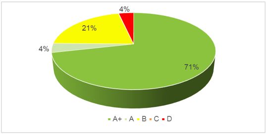 We laten onze buitensportvelden zowel beoordelen op cultuurtechnische als sporttechnische kwaliteit. De cultuurtechnische beoordeling heeft betrekking op de bodemsamenstelling, fundering en waterhuishouding. Maatgevend in deze beoordeling is het bergend vermogen in relatie tot de afvoercapaciteit. De sporttechnische kwaliteit heeft betrekking op de eigenschappen van de toplaag. Hierbij is gekeken naar de grasmat, de stroefheid van de toplaag en reliëf. Onderstaande overzicht geeft inzicht in de kwaliteitsbeoordeling uit 2020.