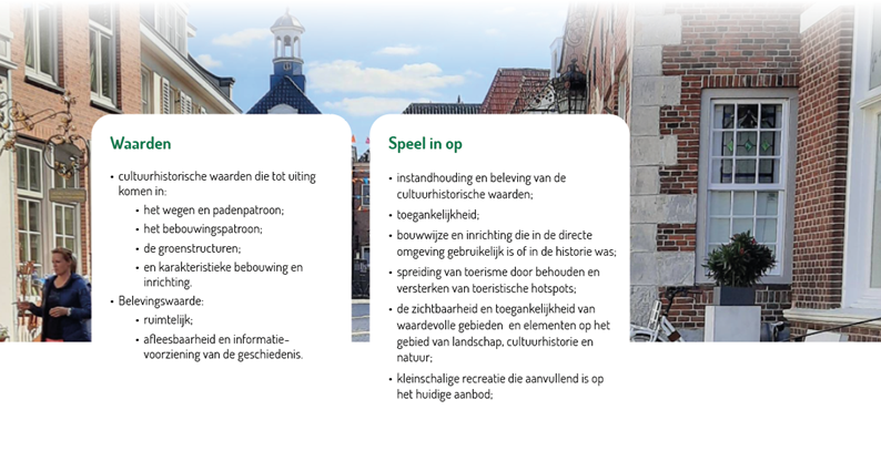 De gemeente wil werken aan kwalitatief toerisme door middel van toerismespreiding en het behouden van een vitaal verblijfsaanbod. Dit doet de gemeente door: