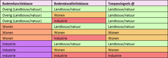 De toetsingsmethodiek voor het bepalen van de bodemkwaliteitsklasse ‘Wonen’ is minder streng dan de toetsingsmethodiek voor het bepalen van de ontgravingsklasse (zie het kopje ‘Ontgravingskaart’ in deze bijlage). Met de minder strenge toets wordt voorkomen dat de bodemkwaliteit van een gebied op basis van één stof wordt ingedeeld in de bodemkwaliteitsklasse Industrie. Dit zou in de praktijk de ongewenste situatie kunnen opleveren dat ook voor alle overige stoffen minder strenge regels gelden en de concentraties kunnen toenemen tot de maximale waarden voor de functie Industrie. Hierdoor verslechtert de kwaliteit van het gebied.