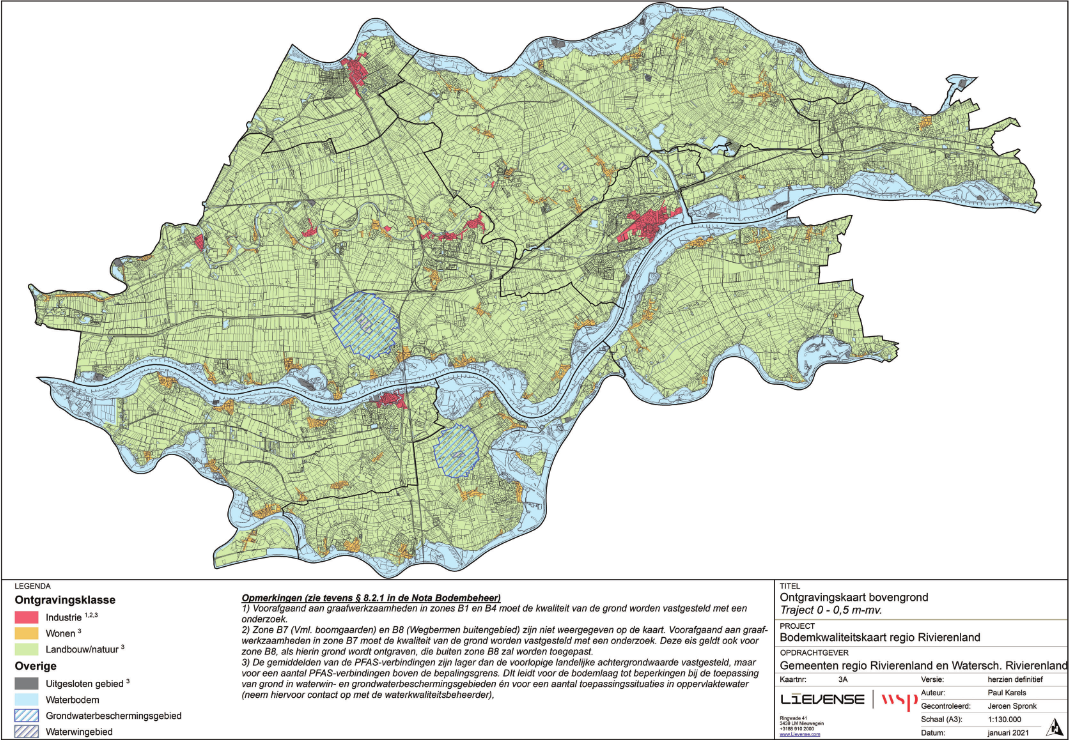 De ontgravingskaart (deze kaart mag onder bepaalde voorwaarden worden gebruikt als bewijsmiddel voor de chemische kwaliteit van de te ontgraven grond, als deze grond elders nuttig wordt toegepast). De kaart doet alleen een uitspraak over welke kwaliteit in het algemeen verwacht mag worden. De kwaliteit van een individuele partij kan daarvan afwijken.