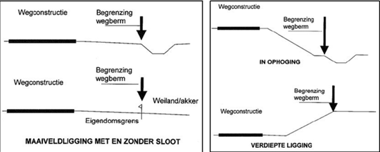 Voor wegbermen langs dijkwegen en voor wegbermen gelegen in gebieden van het Natuur Netwerk Nederland (NNN, de voormalige Ecologische Hoofdstructuur) geldt voor beide zijden van het wegvak een strook van maximaal 2 meter. Dit in verband met de ecologische functie van de wegbermen. Buiten de aangegeven strook mag in de wegbermen alleen schone grond worden toegepast.