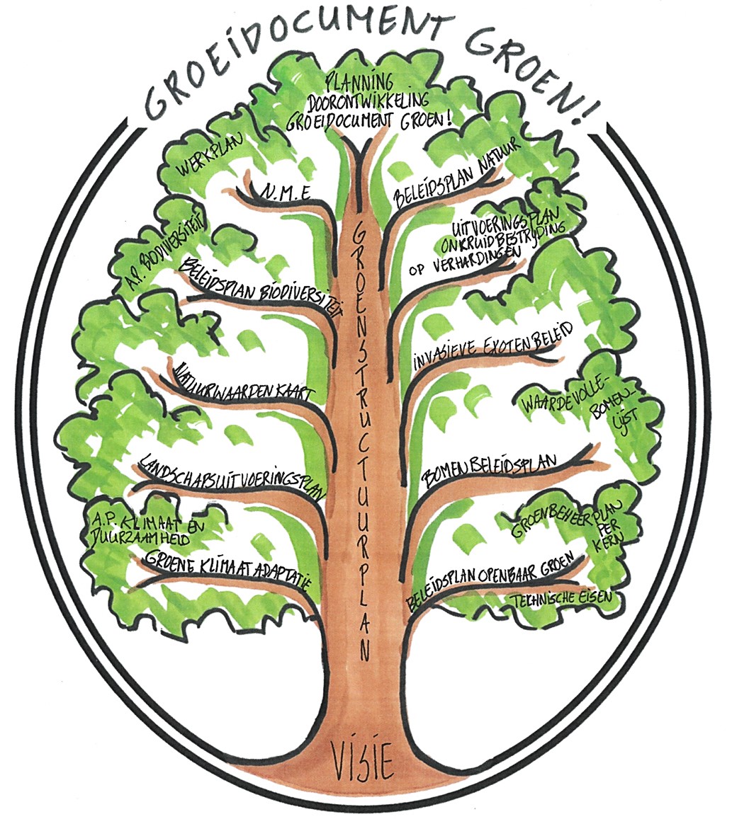 Voor u ligt het groeidocument GROEN! Een ‘levend’ document. We hebben verschillende vormen van groen in onze gemeente. Natuurgebieden, (gemeentelijk) openbaar groen, en privé groen. Al dit groen samen is ons groene netwerk. Elke soort groen heeft zijn eigen aandachtspunten. Een aantal van deze aandachtspunten vraagt om een eigen beleids- of uitvoeringsplan.
