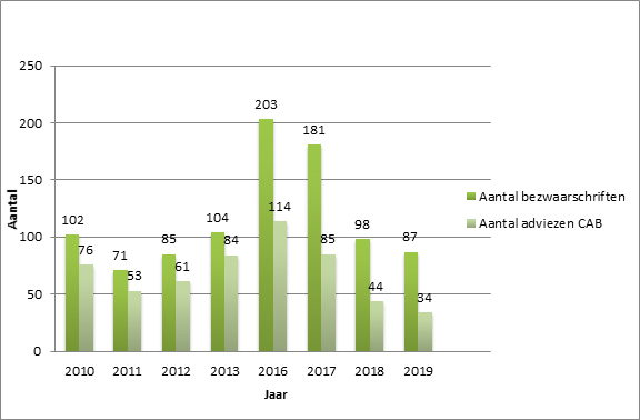 2.3. Aantal bezwaren en adviezen in 2018 en 2019