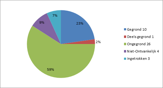 De uitkomsten van de behandeling van bezwaren door de commissie kunnen als volgt worden onderverdeeld: