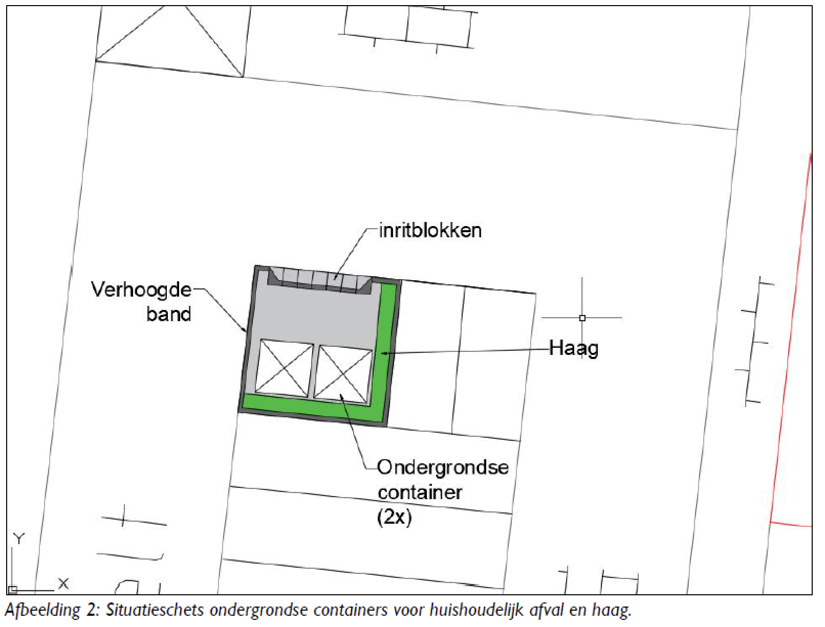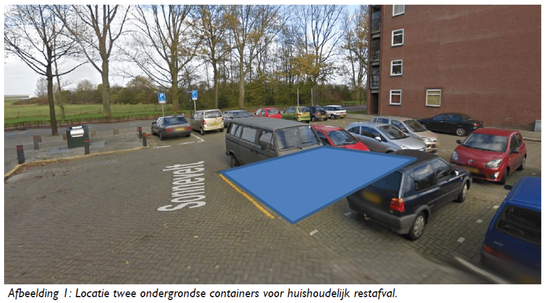 1. Een locatie voor twee ondergrondse restafvalcontainers aan te wijzen op het parkeerterrein bij Sonneveltflat 138-272, nabij de ingang van het appartementengebouw.