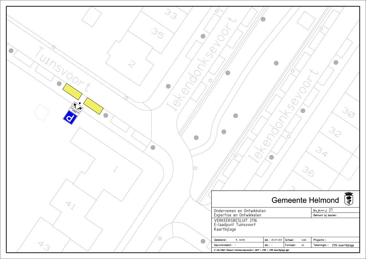 Gemeente Helmond - verkeerbesluit - aanwijzen van twee parkeerplaatsen als parkeergelegenheid alleen bestemd voor elektrische auto’s met gebruik van de laadpaal - Tuinsvoort 2, Helmond