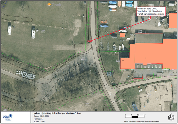 Gemeente Cuijk - verkeersbesluit - gebod tot het volgen van de rijrichting naar links uitrit camperparkeerplaats - Hardweg, Linden
