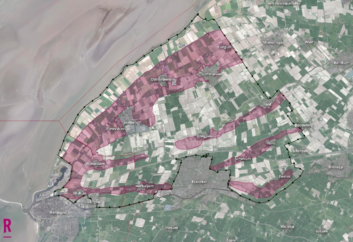 Voor deze beleidsregel gaat het daarbij om de toepassing van de regels van de dubbelbestemming artikel 43 Waarde Reliëf kwelderwal, terpen en kruinige percelen, zoals opgenomen in het bestemmingsplan van de voormalige gemeente Franekeradeel en het gelijknamige artikel 29 in het bestemmingsplan van de gemeente Harlingen (zie kaartje hierna). Een afwijkingsbevoegdheid binnen deze bestemming geeft binnen de huidige toepassing van de regels voor sommige gronden onnodige beperkingen en leidt voor andere gronden tot vragen bij de toepassing van het toetsingskader. Voor een goede uitvoering van de wettelijke verkaveling is het van belang dat hier meer duidelijkheid over komt.