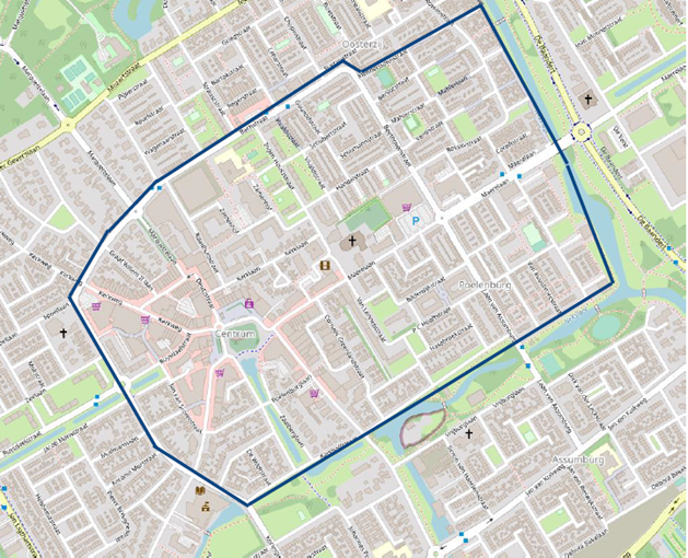 Aangewezen gebieden (Europaplein / centrumgebied e.o.) ten aanzien van het aanwijzingsbesluit veiligheidsrisicogebied.