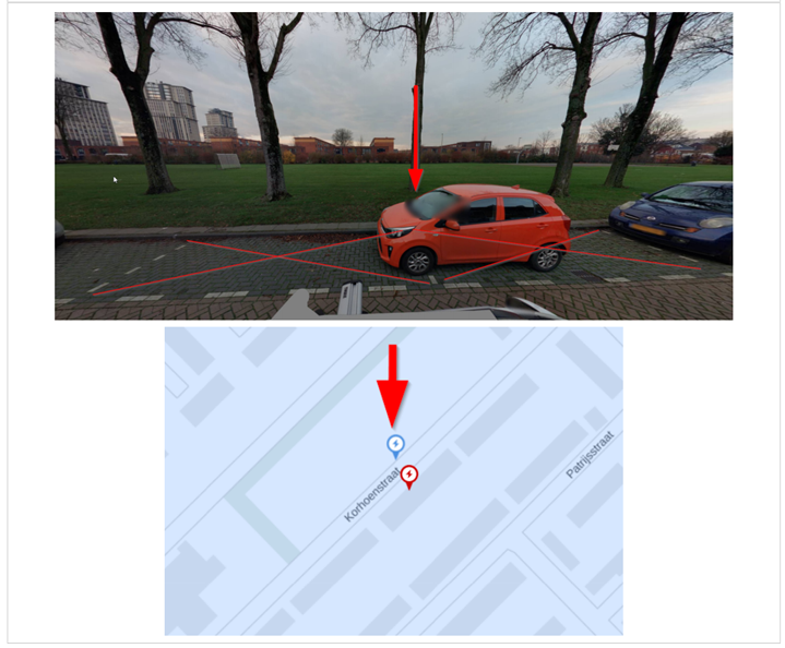 het plaatsen van het verkeersbord E4 van bijlage I van het Reglement Verkeersregels en Verkeerstekens 1990 met onderbord ‘alleen voor opladen elektrische voertuigen’ het parkeren met de bijbehorende witte kruizen op de parkeerplaats, voor twee parkeerplaatsen bij de oplaadpaal op de Korhoenstraat ter hoogte van nummer 23 (Figuur 1), anders dan op het onderbord staat vermeld, te verbieden;