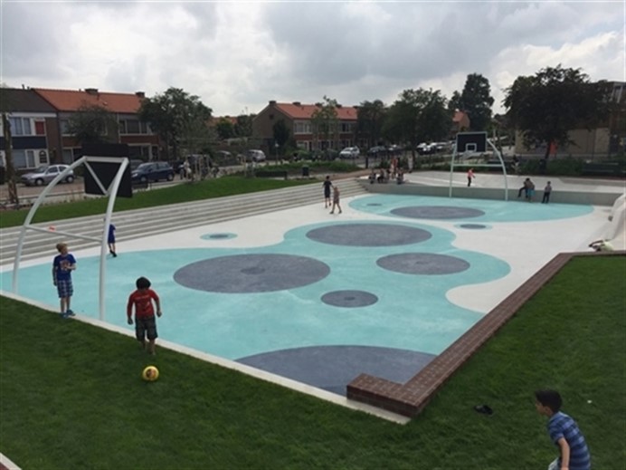 Een waterplein is een voorbeeld van Klimaatadaptatie in stedelijk gebied. In droge tijden is het een speel- en ontmoetingsplek, in natte tijden verandert het in een tijdelijke waterberging. Het is een technologische oplossing die ook nog uitnodigt tot recreatie en ontmoeten in de wijk. In het geval van een extreme regenbui heeft het plein een maximaal waterbergend vermogen van 550 m3, waarbij het water dan maximaal 70 cm hoog staat.