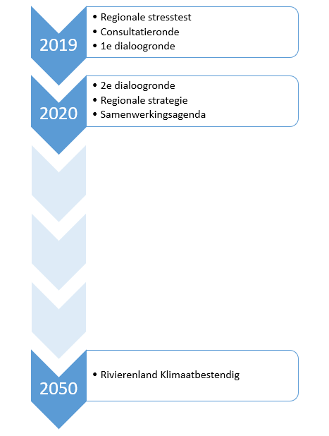 Door nu gezamenlijk actie te ondernemen voorkomen we hoge financiële en maatschappelijke kosten op de langere termijn en leveren we een belangrijke bijdrage aan de versterking en duurzame ontwikkeling van onze regio. Wij beseffen dat onze omgeving en het klimaat blijft veranderen. Het is onmogelijk en ook onwenselijk om in 2020 een complete blauwdruk voor de aanpak en uitvoering van onze klimaatbestendige regio tot en met 2050 te maken. Dit ontslaat ons niet van de verplichting om nu keuzes te maken voor de komende periode.