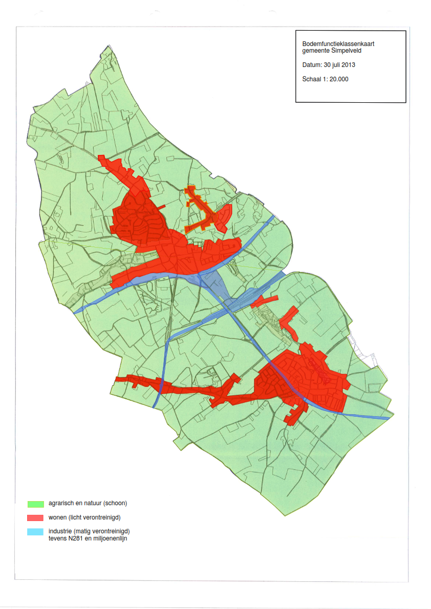 Voor de gemeente Simpelveld is een bodemfunctieklassenkaart opgesteld. Deze