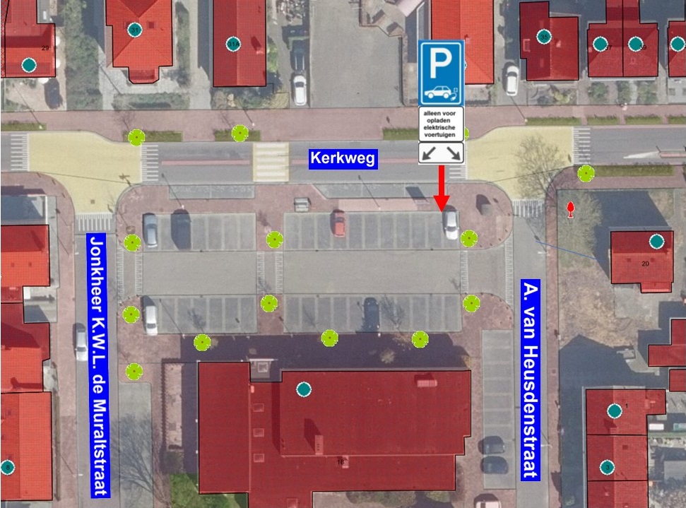 Door een inwoner aan de Bloklandstraat is een verzoek ingediend bij de gemeente Nieuwkoop voor het realiseren van een oplaadplaats voor elektrische auto’s aan de Kerkweg ter hoogte van huisnummer 18 (Party/Zalencentrum ‘Het Punt’) in Ter Aar. De aanvrager is in het bezit van een elektrische auto, maar heeft niet de mogelijkheid om de auto op te laden op eigen terrein.
