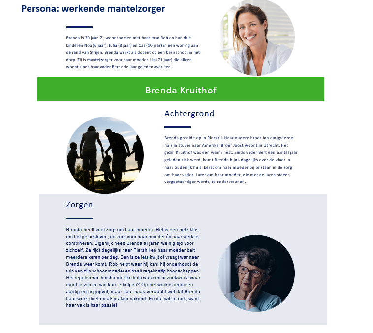 Elke groep heeft zijn eigen verhaal en behoefte aan ondersteuning. We hebben ervoor gekozen de groepen mantelzorgers te beschrijven in de vorm van persona’s.