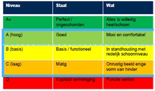 In een beheerniveau zal nooit continu eenzelfde beeld voorkomen, maar een range aan kwaliteitsbeelden behorende bij een beeldmeetlat. Bijvoorbeeld als er net geschoffeld is, is het kwaliteitsbeeld A+, vervolgens gaat de kwaliteit langzaam naar beneden, van A, naar B tot er weer een ingrijpmoment nodig is. Per beheerniveau is het ingrijpmoment uiteindelijk bepalend voor het uiteindelijke kwaliteitsbeeld van een beheerniveau.