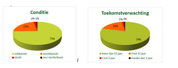 In 2020 is aan Tree-o-logic de opdracht gegeven alle bomen te inventariseren en gelijktijdig een boomveiligheidscontrole uit te voeren. In februari 2021 heeft de gemeente het rapport ontvangen waaruit blijkt dat verreweg de meeste bomen een voldoende conditie hebben. Het betreft hier in totaal ruim 20.750 bomen, 75% van het areaal; 22% van de bomen heeft een onvoldoende conditie (zo’n 6100 bomen); 2% van de bomen (zo’n 650 bomen) heeft een slechte conditie. De overige 1% heeft een zeer slechte conditie (zo’n 325 bomen).
