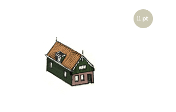 Kleur: groen, rood-bruin (steen), witte accenten.