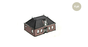 De mansarde is een variant van het eenvoudige woonhuis met een mansardekap. Met een mansarde kap wordt er meer ruimte geboden op de eerste verdieping, zonder daarbij een bouwlaag te hoeven toevoegen. De kapvorm bestaat uit vijf verbonden punten die allen op een halve cirkel liggen. De dakvorm wordt geaccentueerd door witte waterlijsten.